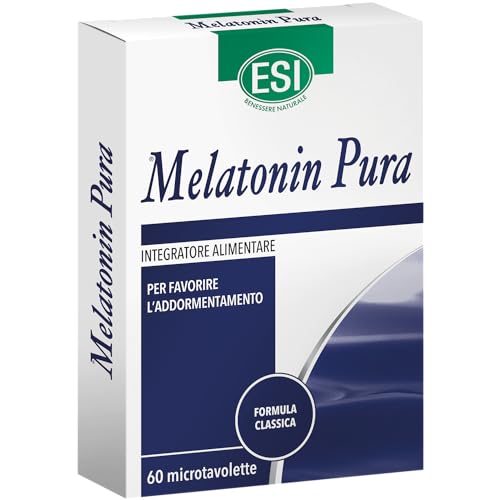 ESI – Melatonin Pura, Integratore Alimentare di Melatonina, Favorisce il Sonno e Contrasta gli Effetti del Jet Lag, Senza Glutine e Vegan, 60 Microtavolette