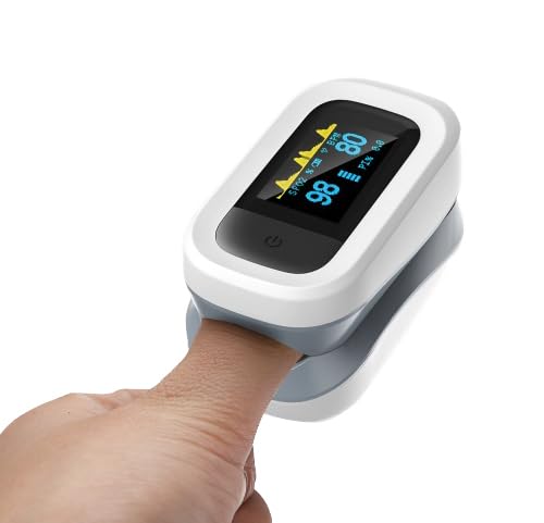 Specifica: Flaem, Pulsossimetro Saturimetro da Dito Professionale Certificato, Misuratore Saturazione dell’Ossigeno e Pulsazioni Cardiache, Schermo Oled a Due Colori, Valori di Soglia Pre-Impostabili